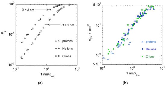 - Hilgers, G.; Bug, M.U.; Rabus, H. Measurement of track structure parameters of low and medium energy helium and carbon ions in nanometric volumes. Phys. Med. Biol. 2017, 62, 7569–7597. [Google Scholar] [CrossRef]