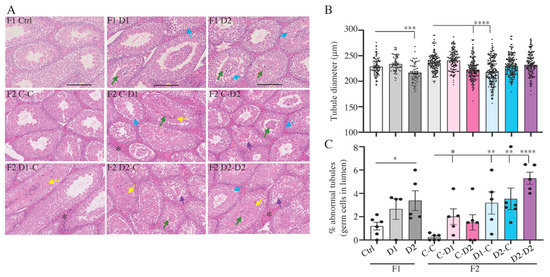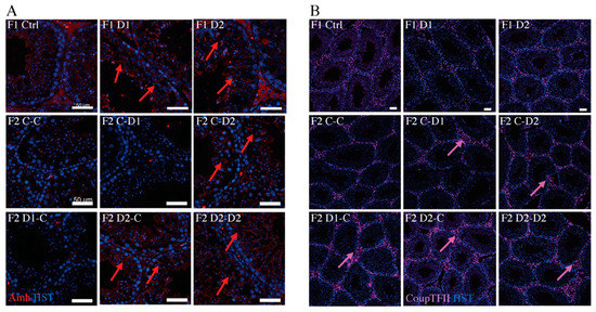 2.4. Histology (HE) and Maturation of 35 dpp F1 and F2 Testes