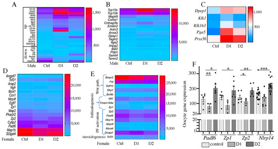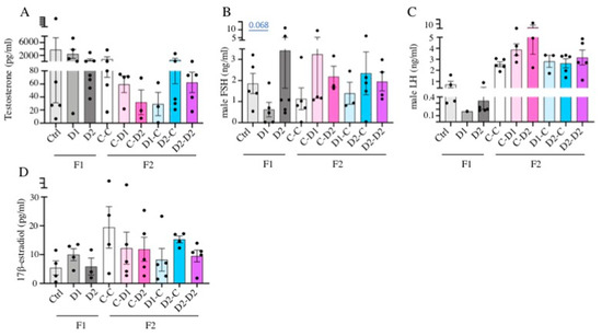 2.7. Differential Gene Expression in Pubertal F1 Exposed Testis and Ovary