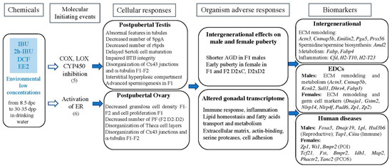Philibert P, Déjardin S, Girard M, Durix Q, Gonzalez A-A, Mialhe X, Tardat M, Poulat F, Boizet-Bonhoure B. Cocktails of NSAIDs and 17α Ethinylestradiol at Environmentally Relevant Doses in Drinking Water Alter Puberty Onset in Mice Intergenerationally. International Journal of Molecular Sciences. 2023; 24(6):5890. https://doi.org/10.3390/ijms24065890