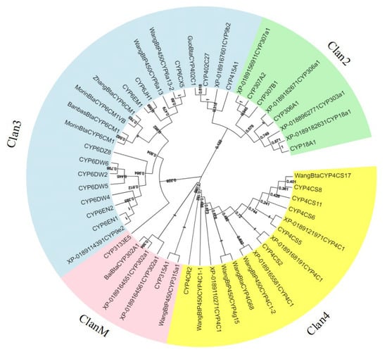 5.2. P450 Gene Classification and Phylogenetic Analysis