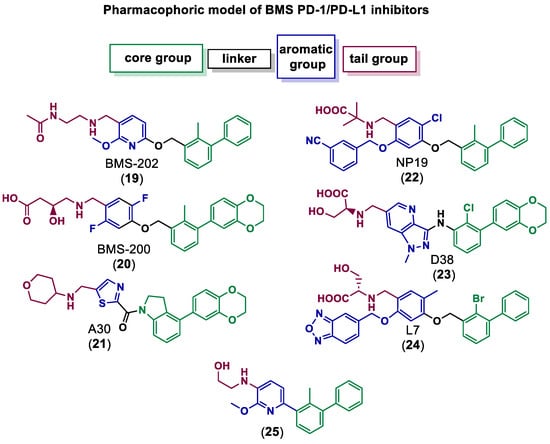 Small molecule inhibitors of PD-1/PD-L1 based on the BMS pharmacophoric model [59,61,62,74,75,76].