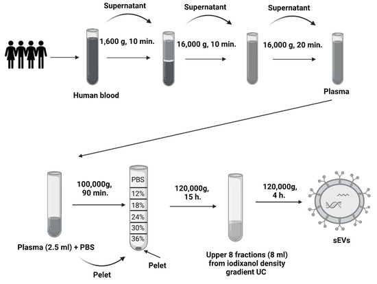 Scheme of sEVs isolation. Scheme of the centrifugation of human plasma and differential ultracentrifugation with iodixanol density gradient.