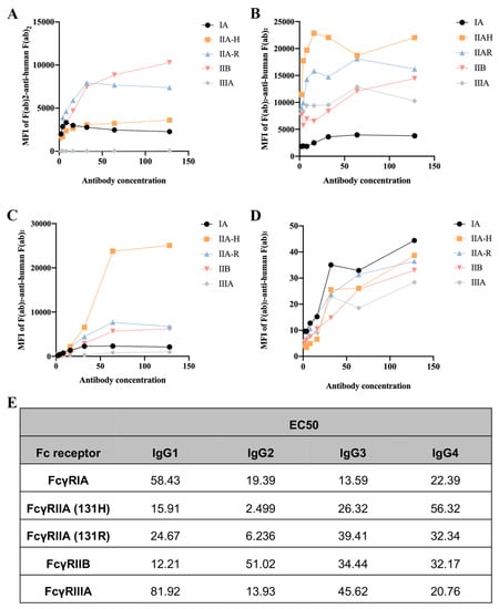 - Nimmerjahn, F.; Ravetch, J.V. Divergent immunoglobulin g subclass activity through selective Fc receptor binding. Science 2005, 310, 1510–1512. [Google Scholar] [CrossRef]
