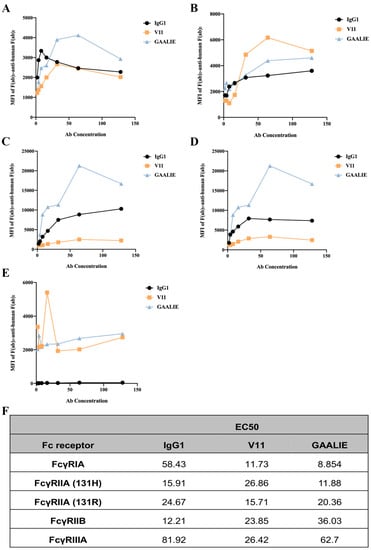 2.8. Fc-Engineered Antibodies Binding to Human FcγRs