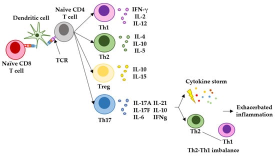 - Martonik, D.; Parfieniuk-Kowerda, A.; Rogalska, M.; Flisiak, R. The Role of Th17 Response in COVID-19. Cells 2021, 10, 1550. [Google Scholar] [CrossRef]