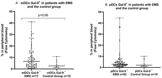2.3. Percentage of Myeloid and Plasmacytoid Dendritic Cells with Gal-9 Expression in Patients with Endometriosis and the Control Group