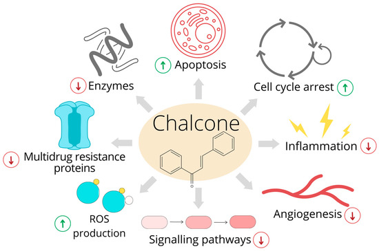 Anticancer effects of chalcones. The original figure was made for this review using the Canva software by Radka Michalkova.
