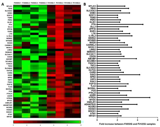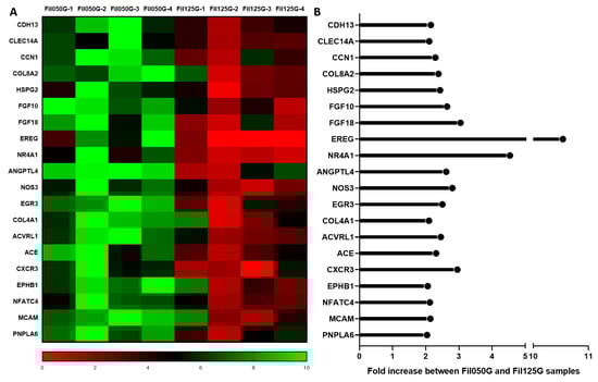 2.2. Pathway Analysis in Fil050G (Highly Osteoconductive) Scaffolds in the Early Phase of Bone Healing
