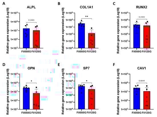 2.3. Analysis of Relative Gene Expression by qPCR in the Early Phase of Bone Healing