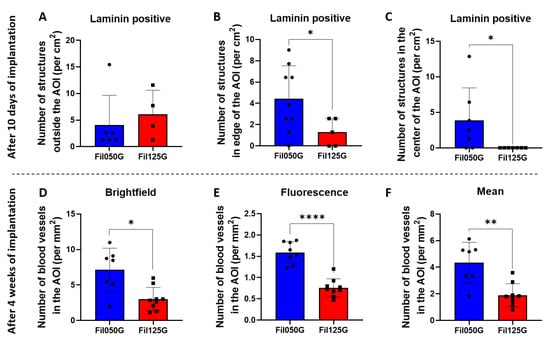 2.5. Blood Vessel Analysis after 4 Weeks of Implantation