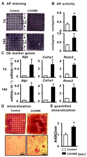 4.5. Ex Vivo Assay for Osteoblast Differentiation and Matrix Mineralization on Two- or Three-Dimensional Levels