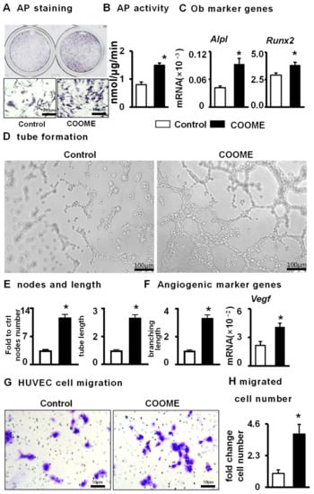 2.8. COOME-Conditioned Medium Promotes Osteoblast Differentiation and Angiogenesis