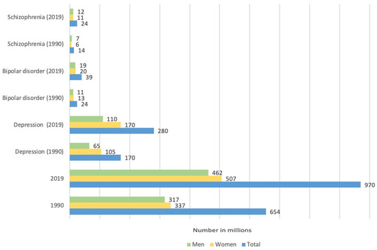 - Charlson, F.J.; Ferrari, A.J.; Santomauro, D.F.; Diminic, S.; Stockings, E.; Scott, J.G.; McGrath, J.J.; Whiteford, H.A. Global Epidemiology and Burden of Schizophrenia: Findings From the Global Burden of Disease Study 2016. Schizophr. Bull. 2018, 44, 1195–1203. [Google Scholar] [CrossRef]
