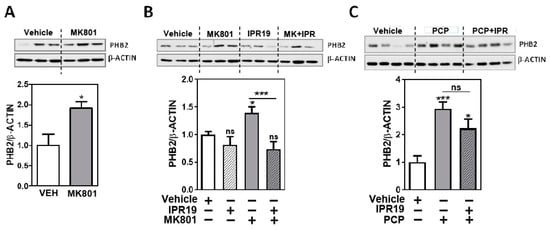2.2. Modulation of PHB2 Protein Levels by NMDA Receptor Activity and the Prolyl Oligopeptidase Inhibitor IPR19 in Rodents