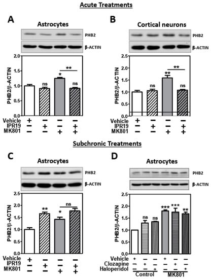 2.3. Modulation of PHB2 Protein Levels by NMDA Receptor Activity and the Prolyl Oligopeptidase Inhibitor IPR19 in Rat Cortical Astrocytes and Neurons
