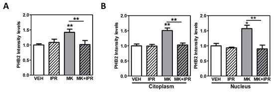 2.4. Characterization of PHB2 in Cortical Neuron Cultures Treated with NMDA Receptor Antagonist and the Inhibitor IPR19