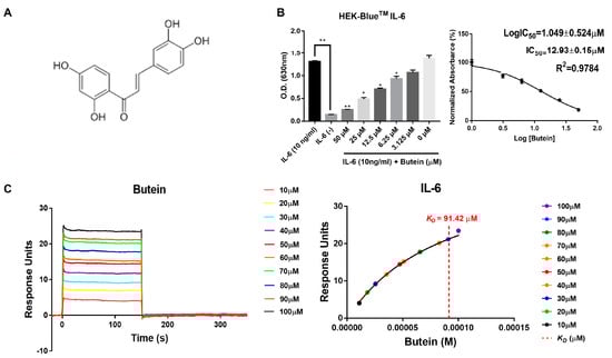 2.2. Characterization of Butein and Anti-IL-6 Activity In Vitro