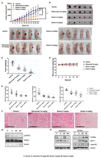 2.5. Butein Inhibited STAT3 Phosphorylation and Induced Intranuclear Accumulation of FoxO3a through Inhibition of IL-6 Signaling