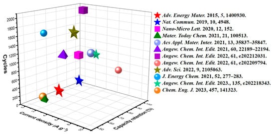 Comparison of cycle stability obtained in works [42,49,50,51,52,53,54,55,56,65,69,73] reviewed above.