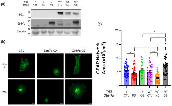 2.4. Effect of Zbtb7a Manipulation on TG2−/− and WT Astrocytes