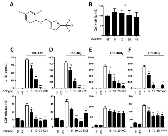 2.1. ODZ Inhibits IL-1β Release and Pyroptosis Induced by Various NLRP3 Inflammasome Triggers