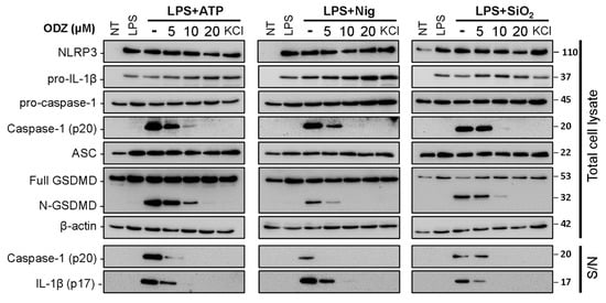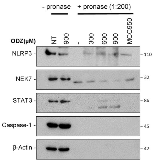 2.2. ODZ Inhibits the Activation of Caspase-1 but Does Not Affect the Expression Level of NLRP3 Inflammasome Components