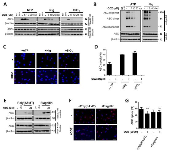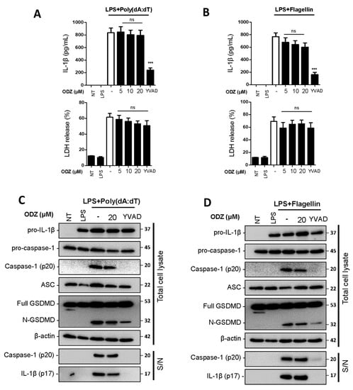 2.3. ODZ Does Not Inhibit AIM2 or NLRC4-Mediated Inflammasome Activation