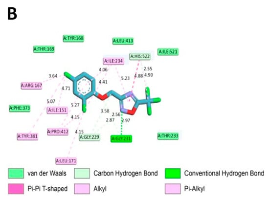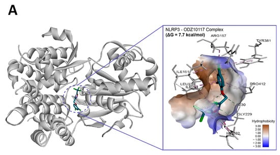 2.7. In Silico Molecular Binding of ODZ with NLRP3 Protein