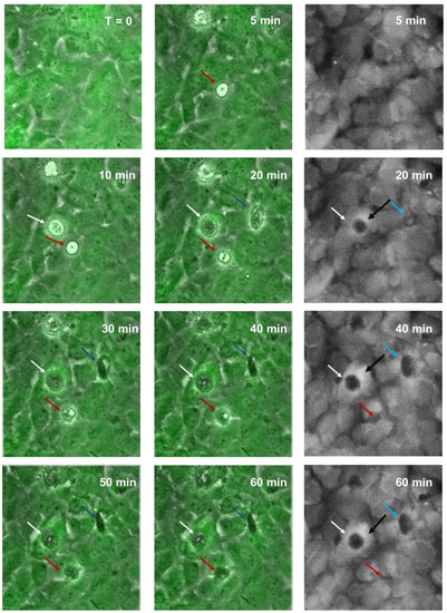 - Carman, C.V.; Springer, T.A. A transmigratory cup in leukocyte diapedesis both through individual vascular endothelial cells and between them. J. Cell Biol. 2004, 167, 377–388. [Google Scholar] [CrossRef] [PubMed]