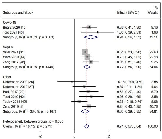 - Liu, Z.; Liu, D.; Wang, Z.; Zou, Y.; Wang, H.; Li, X.; Zheng, D.; Zhou, G. Association between inflammatory biomarkers and acute respiratory distress syndrome or acute lung injury risk: A systematic review and meta-analysis. Wien. Klin. Wochenschr. 2022, 134, 24–38. [Google Scholar] [CrossRef]