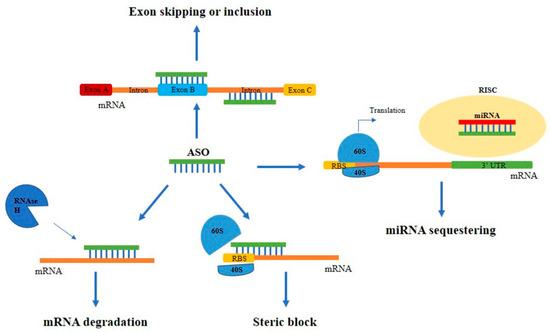 - Bennett, C.F.; Swayze, E.E. RNA Targeting Therapeutics: Molecular Mechanisms of Antisense Oligonucleotides as a Therapeutic Platform. Annu. Rev. Pharmacol. Toxicol. 2010, 50, 259–293. [Google Scholar] [CrossRef] [PubMed]