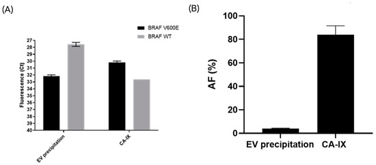 2.5. CA-IX-Positive sEVs Are Found in Melanoma Liquid Biopsies and Their Capture Enables the Enrichment of BRAFV600E Mutation