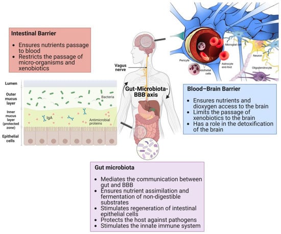 Gut dysbiosis is considered to be an important environmental factor responsible for the loss of barriers’ integrity. Any disruption of the microbiota by diet and food contaminants leading to dysbiosis, translocation, and eventually inflammation will affect the integrity of the IB and BBB. Microbiota disorders and pathways lead to inflammation and the breakdown of both barriers, particularly in the case of chronic exposure to pesticide residues.