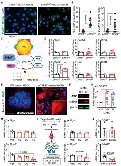 2.2. Lmna Deletion Causes Lipid Accumulation in Early Development CMs