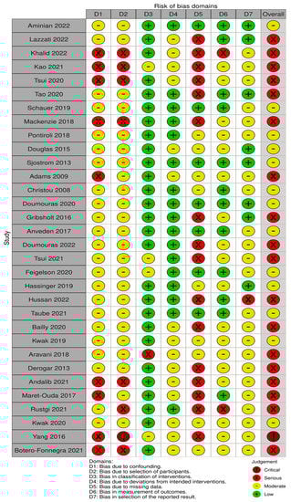 - Higgins, J.P.T.; Thomas, J.; Chandler, J.; Cumpston, M.; Li, T.; Page, M.J.; Welch, V.A. (Eds.) Cochrane Handbook for Systematic Reviews of Interventions Version 6.3 (Updated February 2022); Cochrane: London, England, 2022. [Google Scholar]