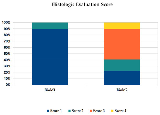 Summary of the four-graded histological evaluation score after implantation of BioM1 and BioM2 for 12 months.