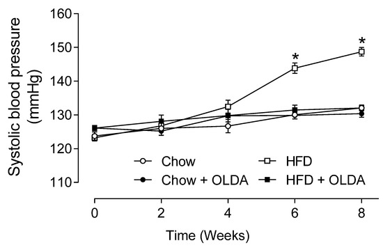 2.5. OLDA Prevents HFD-Induced Development of Hypertension