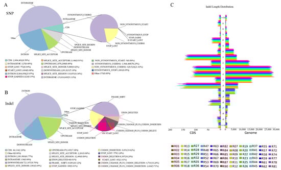 44]. Compared to SNP variation, indel variation was generally less frequent. Most SNPs/Indels were annotated as intergenic variations, with fewer SNPs found in introns. A detailed annotation of SNP/Indels is provided in [