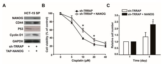 Chicago/Turabian StyleKang, Kyung-Taek, Min-Joo Shin, Hye-Ji Moon, Kyung-Un Choi, Dong-Soo Suh, and Jae-Ho Kim. 2023. "TRRAP Enhances Cancer Stem Cell Characteristics by Regulating NANOG Protein Stability in Colon Cancer Cells" International Journal of Molecular Sciences 24, no. 7: 6260. https://doi.org/10.3390/ijms24076260