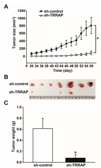 2.6. Silencing of TRRAP Decreases In Vivo Tumor Growth