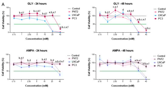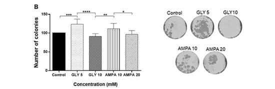 2.1. GLY and AMPA Alter the Viability and Proliferation of Prostate Cells