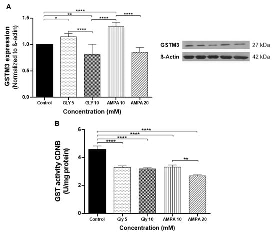 2.2. GLY and AMPA Upregulate GSTM3 Transcripts in PNT2 Cells