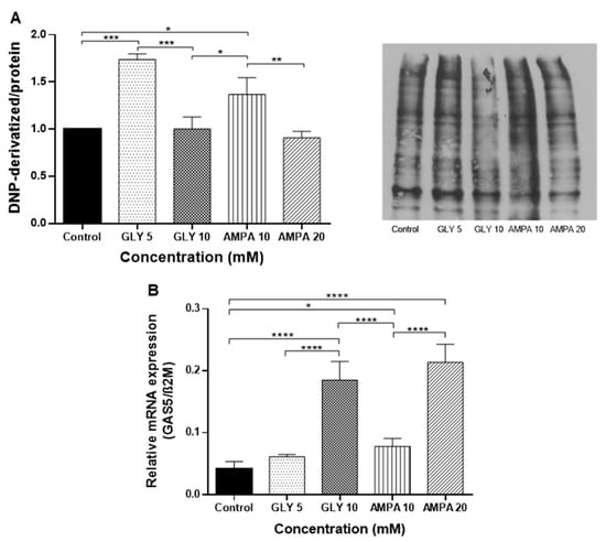 2.4. Effects of GLY and AMPA on Oxidative Stress and GAS5 Transcripts