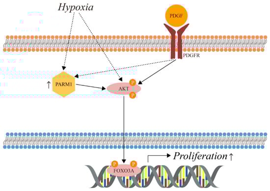 In conclusion, we hypothesized that PARM1 could promote PASMC proliferation via an AKT/FOXO3-dependent signaling pathway in PAH, which is illustrated in Figure 9.