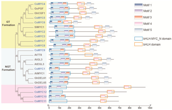 2.1. Genome-Wide Identification and Phylogenetic Analysis of Cucumber MYC Transcription Factors