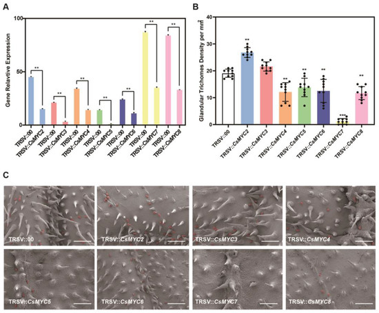 Feng, Z.; Sun, L.; Dong, M.; Fan, S.; Shi, K.; Qu, Y.; Zhu, L.; Shi, J.; Wang, W.; Liu, Y.; et al. Identification and Functional Characterization of CsMYCs in Cucumber Glandular Trichome Development. Int. J. Mol. Sci. 2023, 24, 6435. https://doi.org/10.3390/ijms24076435