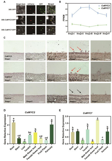 2.4. CsMYC2 and CsMYC7 Show Similar Expression Patterns in Cucumber