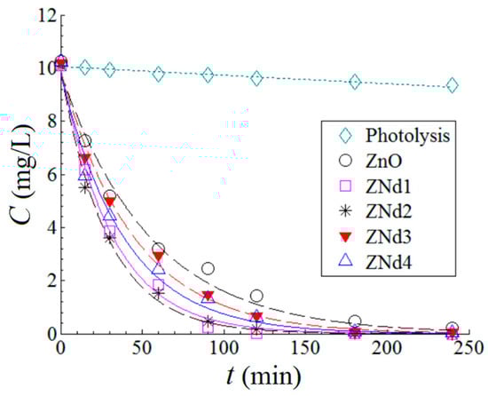 - Divya, N.K.; Pradyumnan, P.P. Enhancement of photocatalytic activity in Nd doped ZnO with an increase in dielectric constant. J. Mater. Sci. Mater. Electron. 2017, 28, 2147–2156. [Google Scholar] [CrossRef]