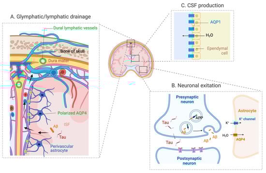 - Papadopoulos, M.C.; Verkman, A.S. Aquaporin Water Channels in the Nervous System. Nat. Rev. Neurosci. 2013, 14, 265–277. [Google Scholar] [CrossRef]